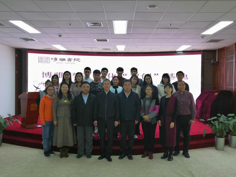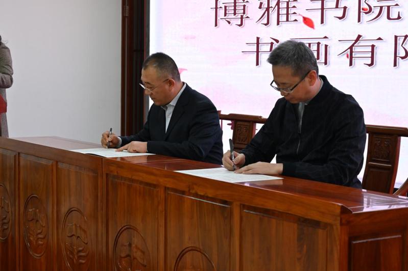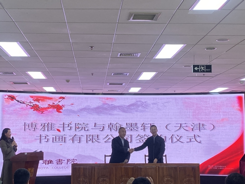 为庆祝博雅书院成立一周年,提升师生对博雅书院认同感和归属感。11月22日下午,博雅书院文化“双创”基地签约仪式在博雅书院报告厅举行。博雅书院院长肖强,天津棋院刘子健院长,翰墨轩(天津)书画有限公司盖文卓、自然也(天津)文化发展集团公司李猛,博雅书院2019执行委员会成员参加了签约仪式。仪式由博雅书院常务副院长尚绪芝主持。