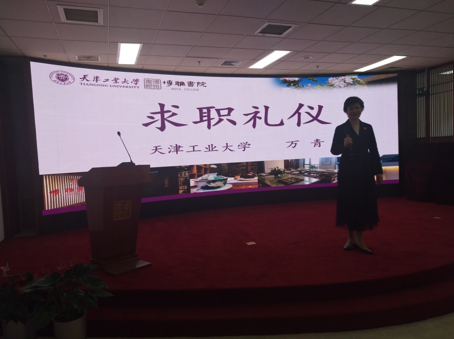 讲座题目:就业礼仪讲座时间:2020年5月18日(周一)上午10:00主讲人:万青,工大原就业指导教研室主任、学校创业导师,天津礼仪协会常务理事、天津无形资产研究会员。南开大学EDP中心、工信委、滨海新区等单位特聘讲师。天津达沃斯论坛、全运会、东亚运动会、大运会及天津世界智能大会等大型活动礼仪培训师。国家卫计委首批体脂管理师。讲座提要:1.礼仪内涵与职业形象2.服饰礼仪与禁忌3.正确使用体态语