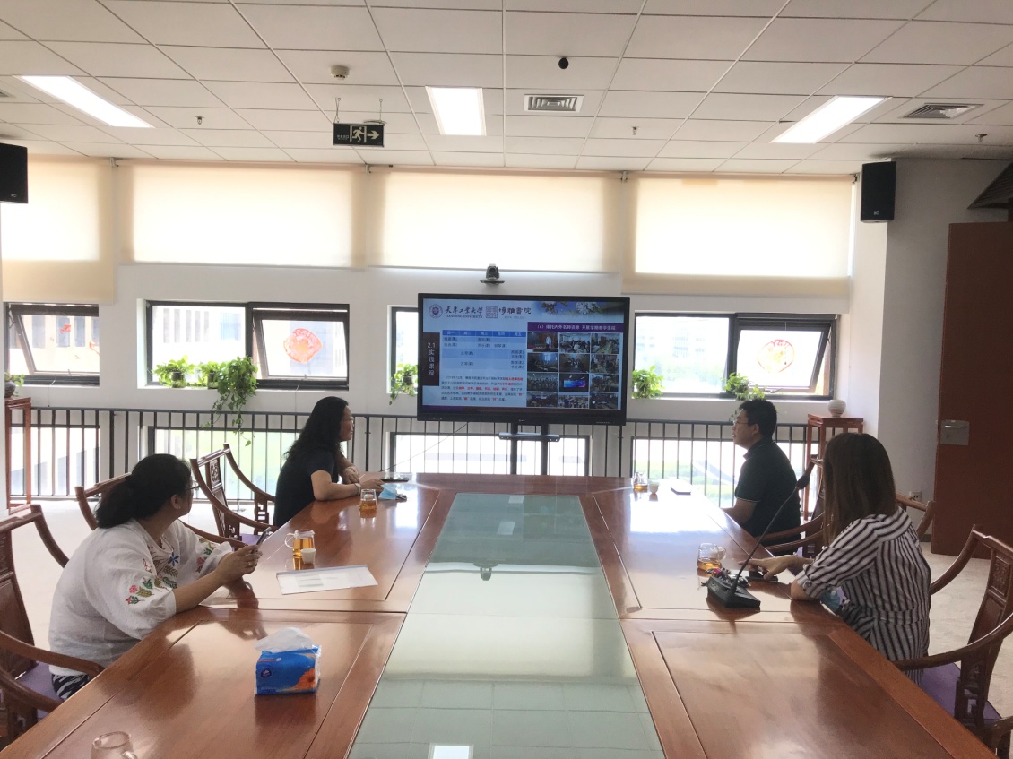 尚绪芝老师带领于总经理等人参观了博雅书院的育人环境、教学设施和师生作品。参观结束,尚老师介绍了书院的工作特色、育人理念和发展规划。于总经理听完介绍颇有感触,感慨“工大学子能拥有博雅书院的学习环境是件幸福的事情”,也希望今后能与书院合作共同打造文化传承与创新、文化育人的新平台。他表示:愿意遴选一些本中心拥有自主知识产权的优质视频资源放到博雅书院的播放平台上,服务于学生的教育和培养。双方还就博雅讲坛的录制及传播、书院宣传视频的制作、书院活动的推广以及双方共建的其他方面内容进行了深入的交流。最后于总经理表示,希望通过合作能够进一步打造好博雅书院这张“名片”,在服务工大学生成长的同时,也希望合力打造的书院产品通过广电的传播渠道,服务天津的老百姓。