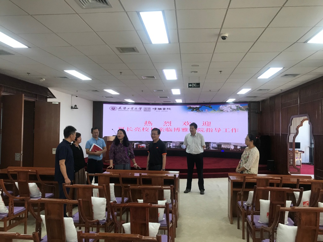 2020年8月21日新学期第一天,夏长亮校长一行来到博雅书院实地走访指导书院建设。党办,校办和图书馆等单位负责人陪同,书院常务副院长尚绪芝和副院长倪娟负责接待。