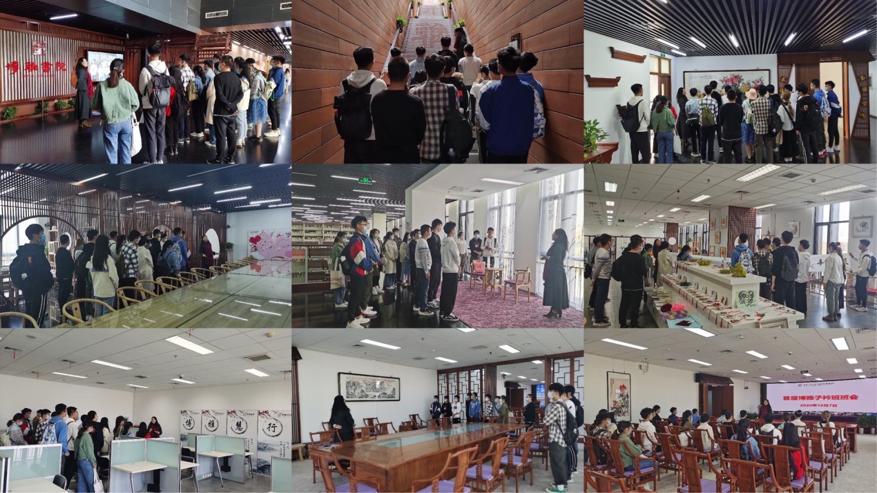首先,尚院长带领全体学员重新认识了博园、雅园、慧园、行园四个教学场地以及茶语空间、报告厅和会议室,讲解各个空间功能作用、设计构想、发展目标,鼓励同学们深入了解书院,以“主人翁”的身份,推广、传播书院的发展理念,在助力书院发展的同时也积蓄自我发展的力量。随后,倪院长带领学员集体朗诵了“八礼四仪”,以此教育引导大家强化文明礼仪素养。最后,尚老师组织大家落座报告厅,讲述了报告厅装修装饰过程中的感人的故事,并提出了几点期望: 一是希望同学们珍惜机会,珍惜博雅子衿班成员的荣誉,处理好专业学习和非专业学习的关系,不断丰富自己。二是脚踏实地,仰望星空,立志高远,努力做一名“有智识、有厚度、有温度”之人。