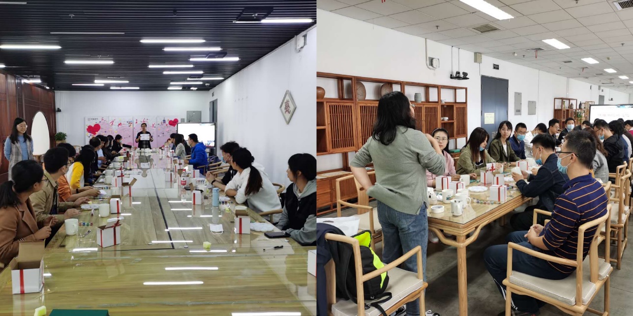 2020年10月15日,43名今年新入职的老师来到博雅书院体验彩绘瓷杯手工课。我校艺术学院的付川和金晶晶两位专业老师担任授课,博雅书院倪娟副院长负责接待。