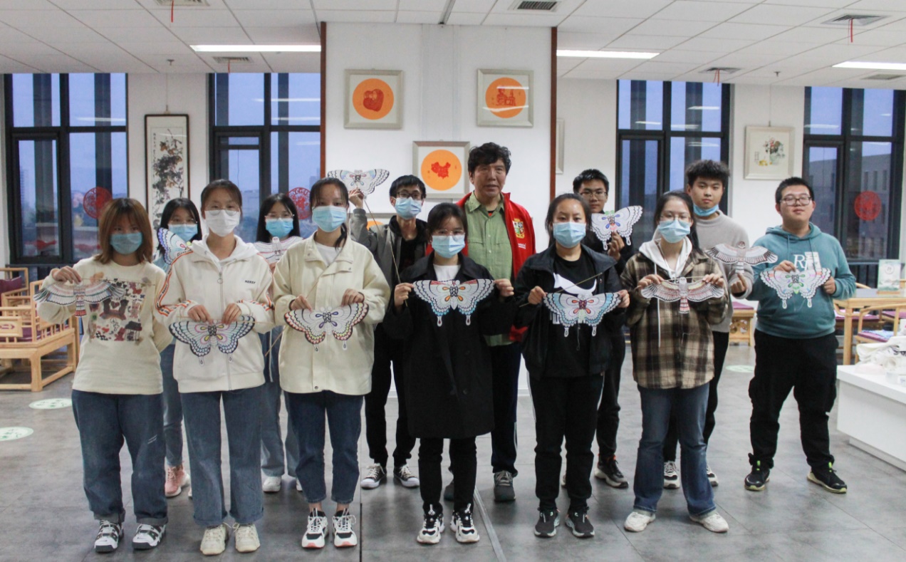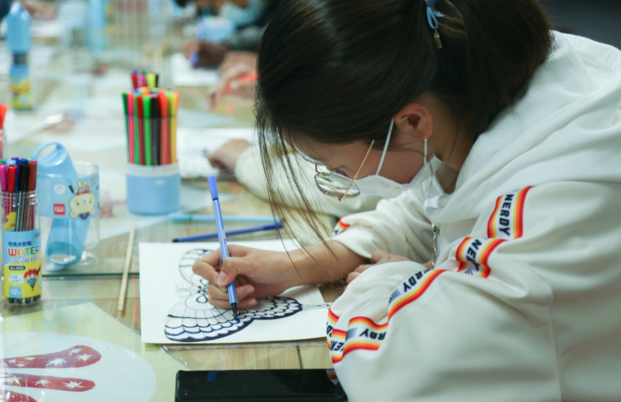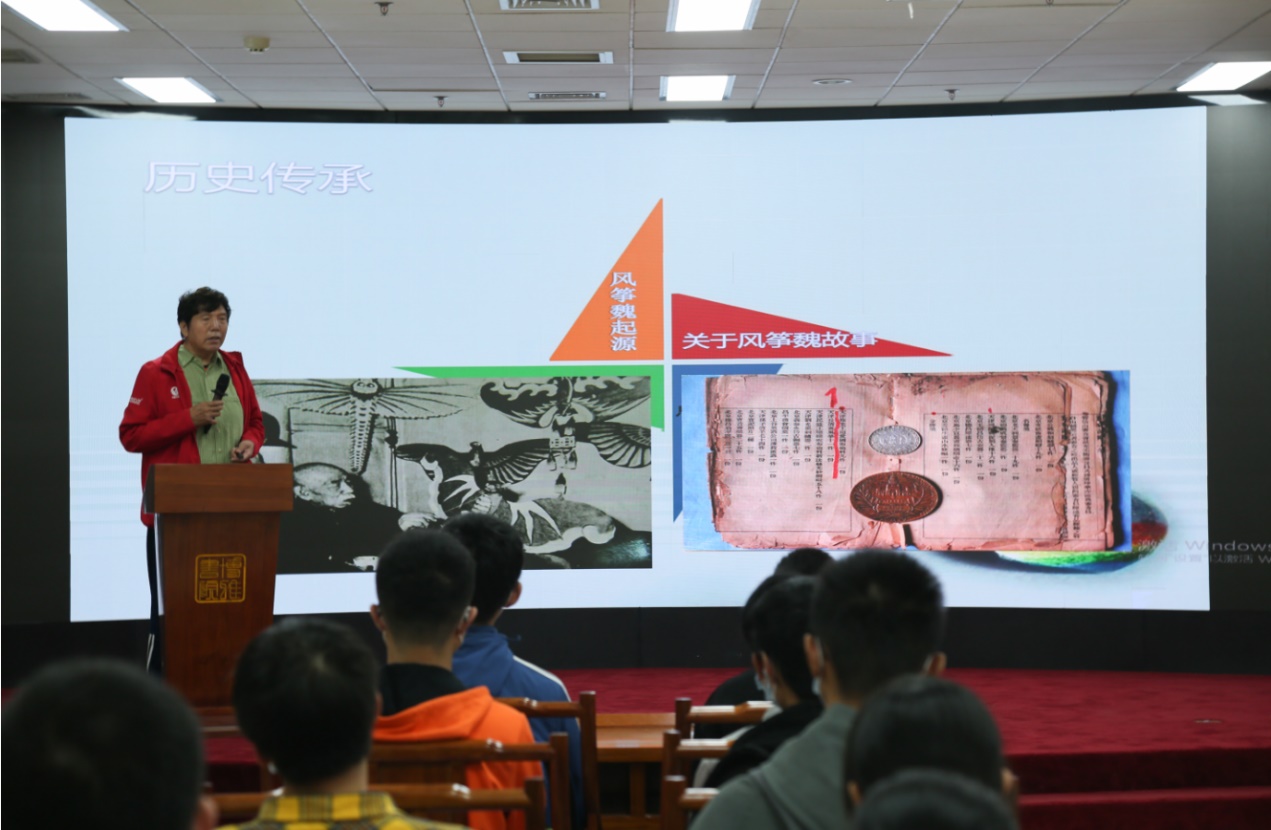 魏国秋先生作了《风筝魏的魅力传承》的专题讲座,从历史传承、工艺特点、作品分类等方面对“风筝魏”作了全方位的介绍与讲解,分享了“风筝魏”走出国门,蜚声全球的精彩故事。“风筝魏”传承至今已过百年,风筝多取材于飞禽走兽、神话故事等,不仅结构精巧,还有很多吉祥的寓意,同时所有的部件都可以拆装、折叠,构造精巧奇妙。随后,魏先生带领同学们一起绘制风筝,共同在点滴色彩间体验感受传统文化的独特魅力。