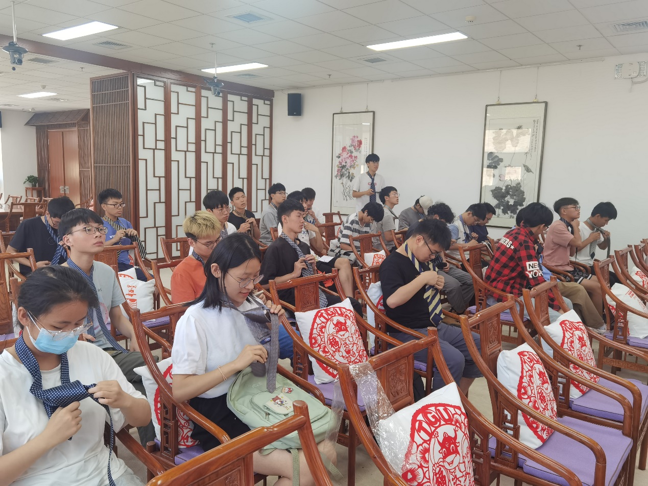 紧接着,从“关于父亲的诗歌”与“父亲节祝福”中探讨子女与父亲“爱的互动”。活动中,邀请同学们在天工主题明信片上写下“对父亲最想说的一段话”,并带着同学们学习领带的打法,也期待着大家在父亲节来临之际,能够亲手为父亲打上一个帅气的领带。程老师现场还为同学们讲解了领带的色彩搭配原则以及注意事项。