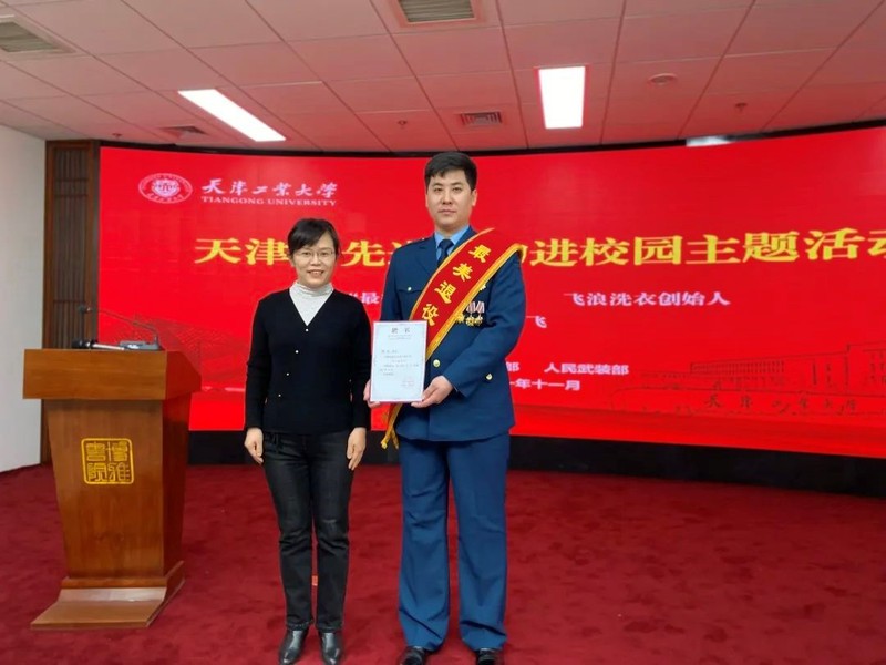 11月26日上午,我校在博雅书院举办“天津市先进人物进校园”活动,全国“最美退役军人”、飞浪洗衣创始人衡飞同志应邀为同学们做了《奔跑吧青春 整装待出发》专题报告。