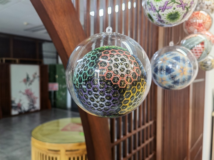 棉布包裹、丝线缠绕、手工绣图,一颗手鞠球不论大小,都要经过这样漫长的制作过程,有时要花费数月时间,制作者用专注的精神和温柔的心意填充进去,同时还要设计斑斓的线条、搭配精致的刺绣,一针一线皆是匠人精神。