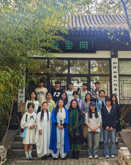 2025年4月20日,在博雅书院院长尚绪芝带领下子衿班学员走进水上公园牡丹园,赏牡丹之风姿。随后,子衿班学员在书院老师带领下,到盆景园“一日茶书房”参观“风行水上”古器物展和“如造自然”牡丹插花展,感受汉代艺术之美和中式插花之美。