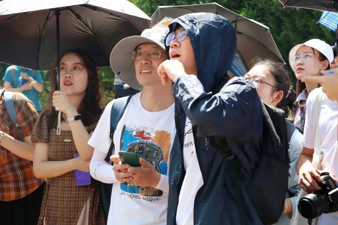 18日上午,一行人前往位于咸阳市乾县的乾陵。乾陵是陕西关中地区唐十八陵之一,合葬着唐高宗李治与女皇武则天,是保存最为完好且未被盗掘的唐代帝陵。仰望历经千年风霜的无字碑、俯瞰神道之侧两行翁仲话前朝,俯仰之间,即为述圣纪碑与“六十一蕃臣像”,盛唐气象与文化瑰宝尽在其中。随后,一行人参观了永泰公主墓、章怀太子墓和乾陵文物精品展,墓中壁画丰富多彩、栩栩如生,展品琳琅满目、巧夺天工,展现出极高的艺术水平。