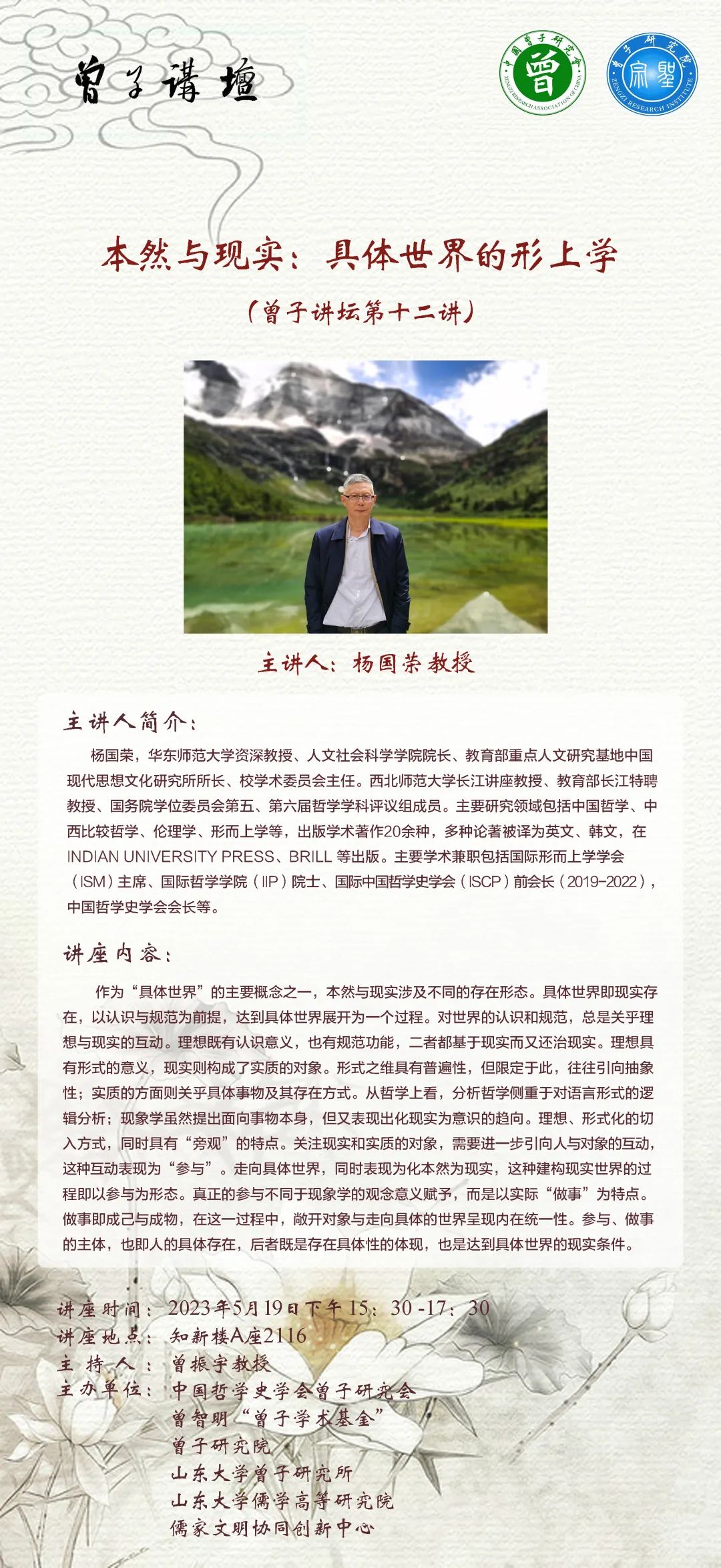 讲座预告 | 曾子讲坛第12讲:杨国荣教授谈“本然与现实:具体世界的形上学”