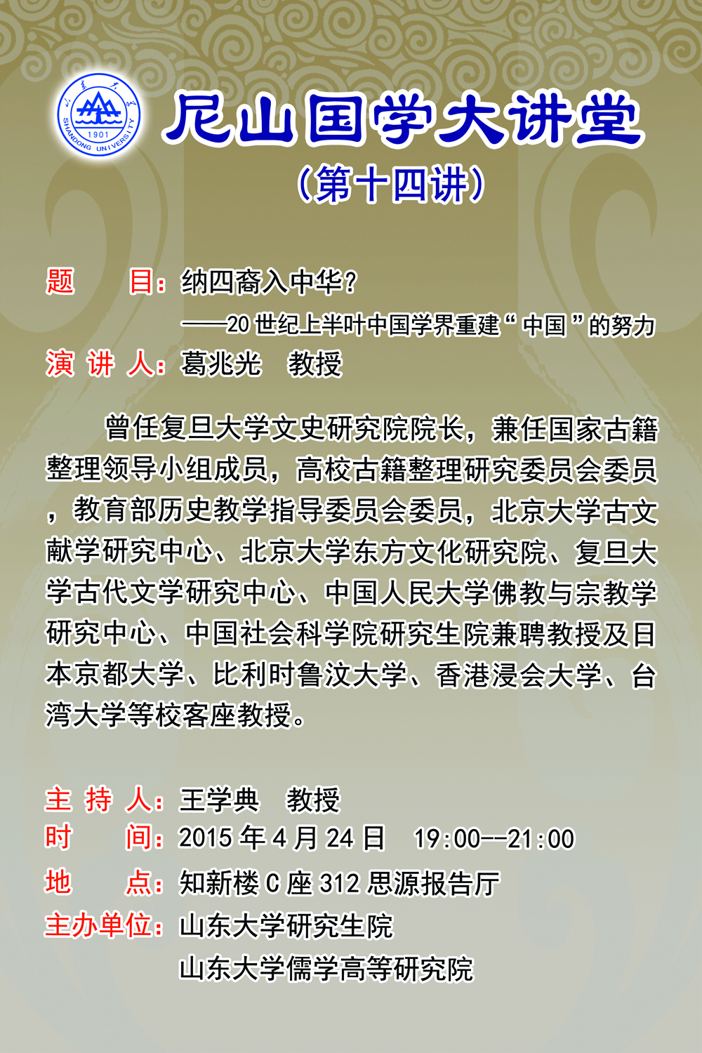 学术预告:尼山国学大讲堂(第十四讲)