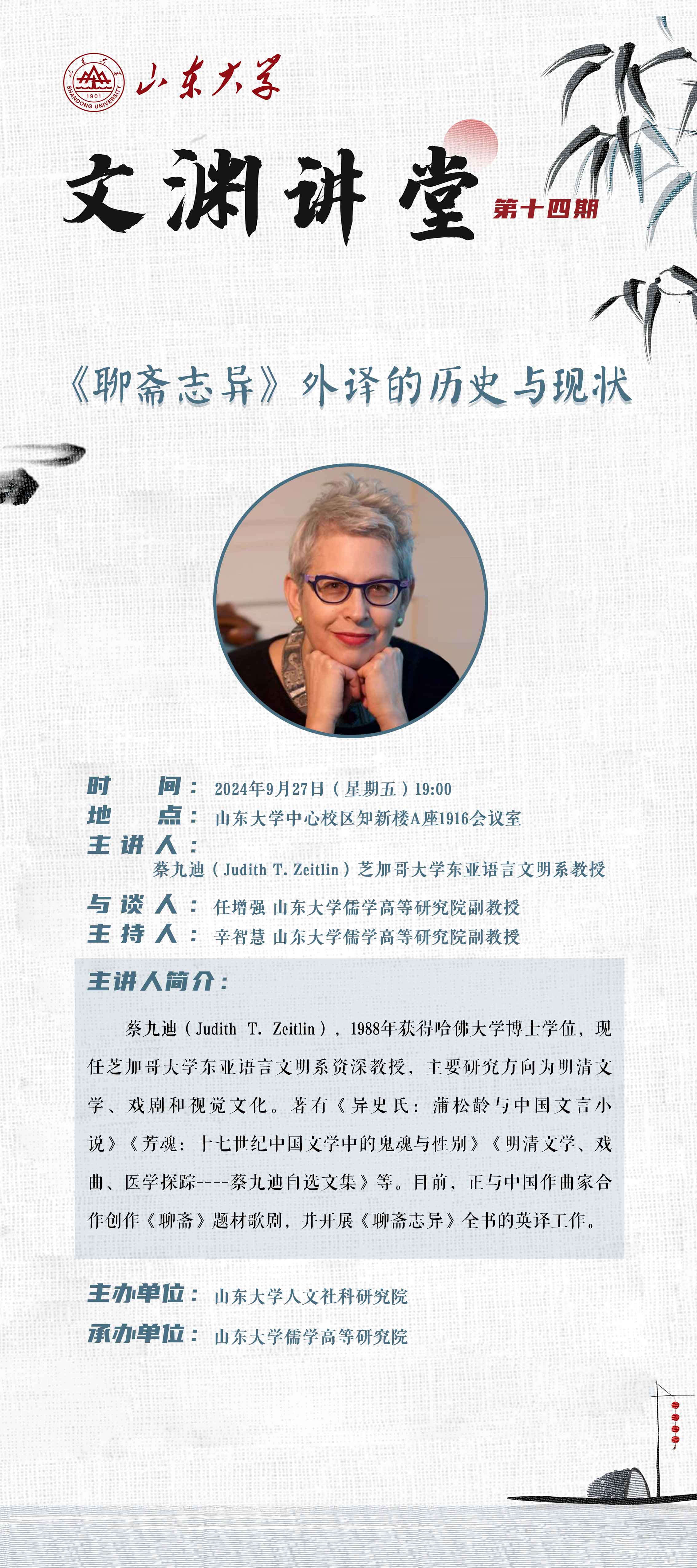 讲座预告 | 文渊讲堂第十四期:《聊斋志异》外译的历史与现状