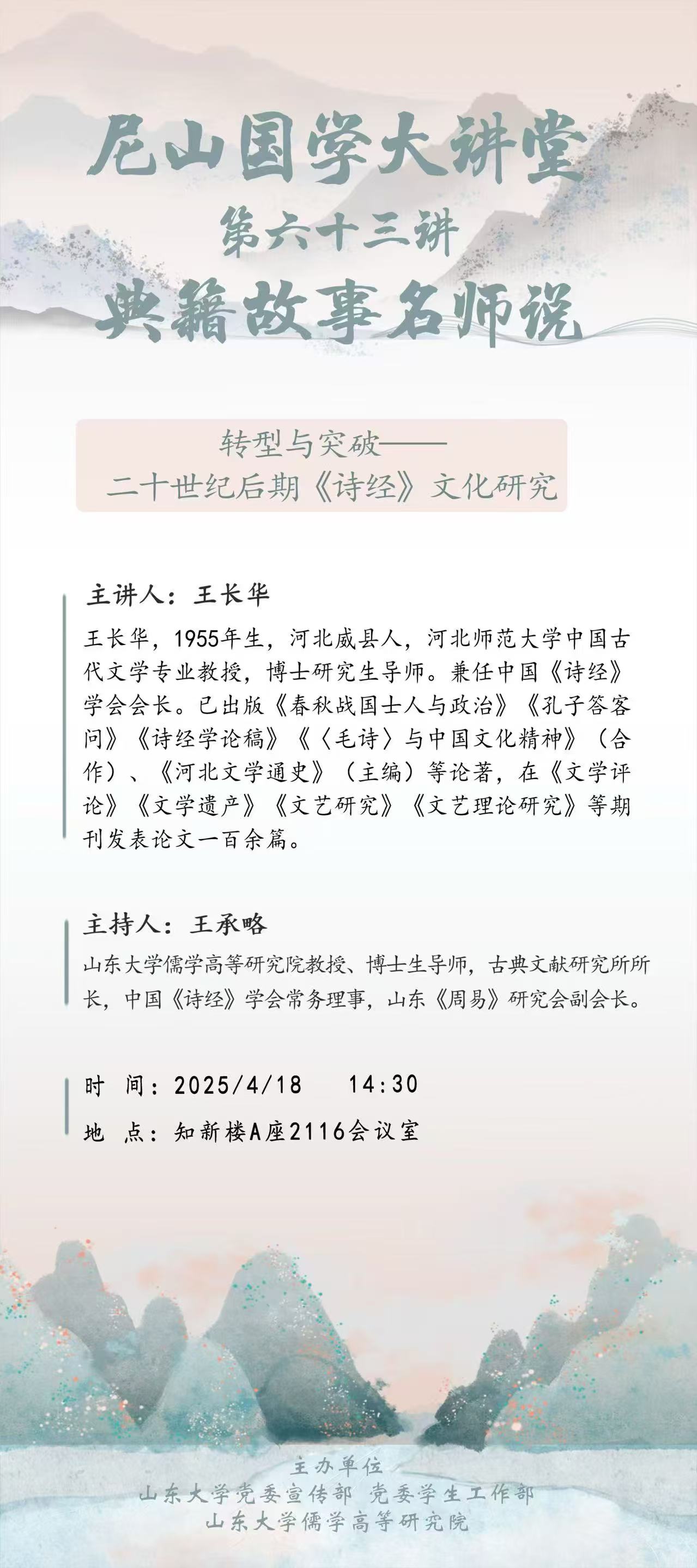 尼山国学大讲堂第六十三讲 典籍故事名师说丨王长华:转型与突破——二十世纪后期《诗经》文化研究