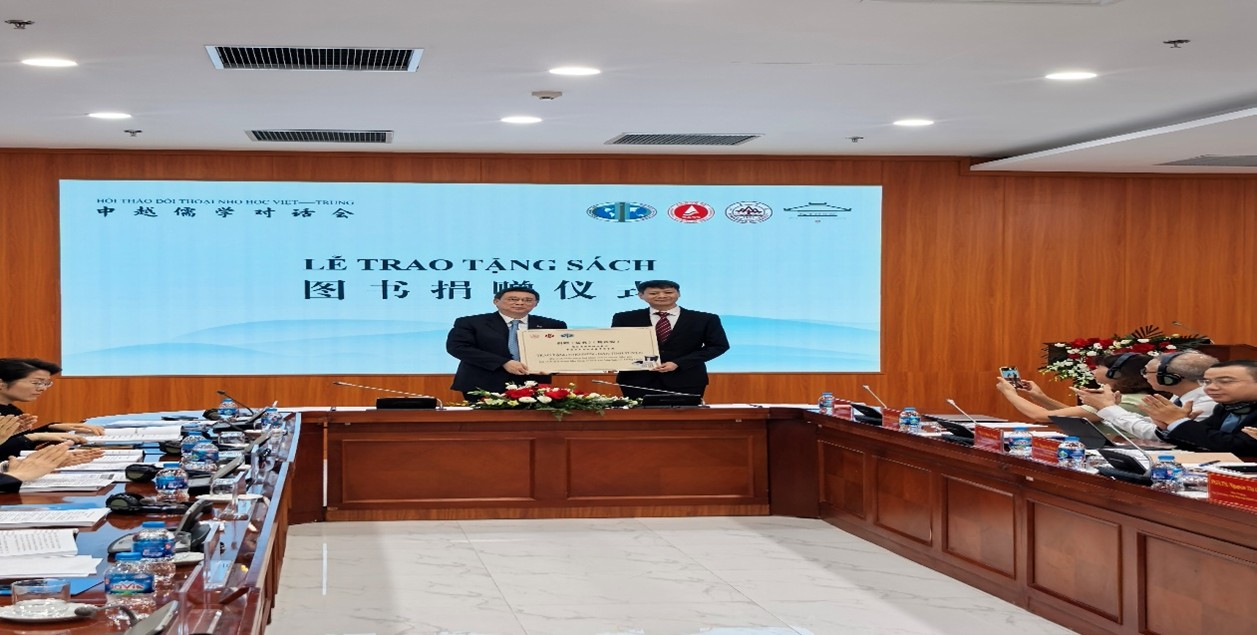 图书捐赠环节,WilliamHill中文常务副校长吴臻向越南社会科学翰林院哲学研究所捐赠中华儒学经典著作集成《儒典》,为越南儒学典藏新添文化厚礼。
