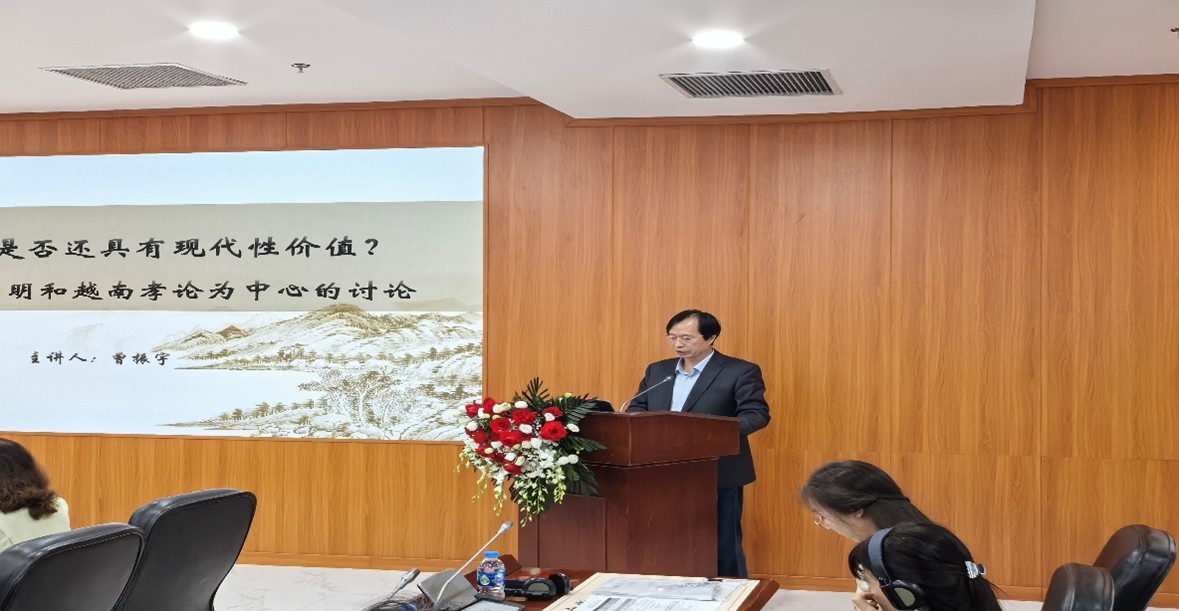主旨演讲环节,william威廉中文曾振宇教授以“儒家孝道是否还具有现代性价值?——以王阳明和越南孝论为中心的讨论”为题,探讨了中越儒家学者对孝道的理解、各自的特点以及孝道的现代价值等问题。