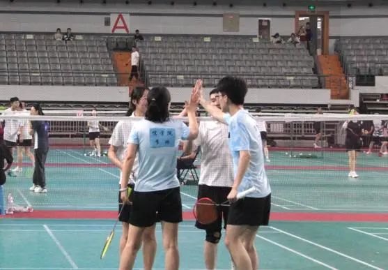 下午,第三场比赛拉开序幕,儒院和化学与化工学院展开激烈对战。前两组队员一败一胜,由纪霖凯和孙峻旭组成的搭档在第二局比赛中取得了暂时的胜利,徐金玲和石杰组成的第三组压力巨大,二人拼尽全力,以灵巧的身姿应对对方球员的猛烈进攻,但随着二人体力逐渐下降,学院最终无缘16强。虽然没能晋级,但儒院队员坚持不懈、携手共进的精神赢得了对手的尊敬和现场的掌声。