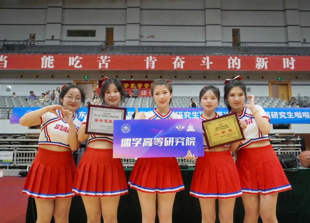 激情飞扬,舞动青春。在比赛现场,儒院队员们身着统一服装,以昂扬的姿态走向舞台中央。随着动感十足的音乐响起,前排队员们挥舞手中的彩球,后排队员则摆出一个高难度的叠罗汉姿势亮相。踏着紧张而充满活力的音乐节拍,啦啦操队员们以整齐划一的动作、流畅的队形变换以及富有创意的舞蹈表演展现出儒院学子的青春活力与团队精神,打动了在场的评委和观众。当音乐的最后一个鼓点落下,队员们精心设计并完美展示的结尾亮点动作更是赢得了阵阵欢呼与掌声,儒院啦啦操队最终获得了94.97分的好成绩。