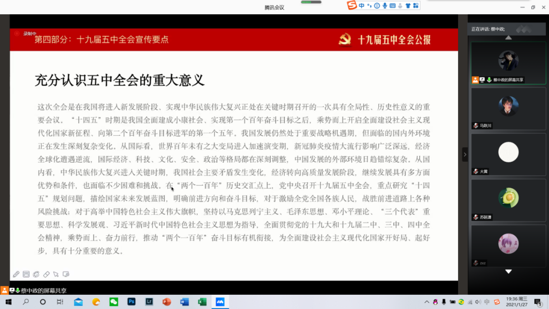 农村基层干部宣讲党的十九届五中全会精神、政策,蔡中政同学则选择线上开展活动,其他宣讲团成员将陆续按计划进行政策宣讲。
