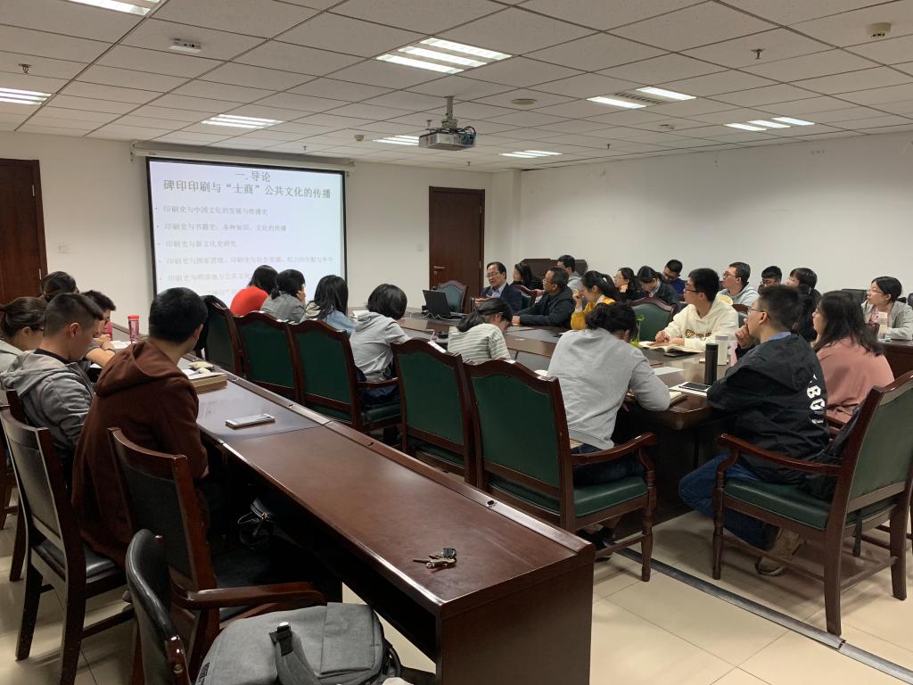 周启荣教授首先介绍了本次讲座的两个核心内容:碑刻印刷与公共文化。“碑刻印刷”(或“拓印”)作为一种文献复制或复印技术(reprint),加强了文献的存留性与公示性(publicity)。同时,拓印本在文献资讯系统中呈现出一种流动(mobile)的面貌:拓印本既可变成雕版印刷的印本文献,又可跨越艺文体类(literary genres),从一纸拓片进入方志、族谱、文集等文本。“公共文化”,即公共组织所产生的文化。周教授对公共文化的思考,源于早年间美国汉学家对中国古代是否具有德国社会学家哈贝马斯(Jürgen Habermas)提出的“公共领域”(public sphere)与“公民社会”(civil society)产生的争论。周教授认为,应该利用本土语言资源建构、分析中国古代社会。