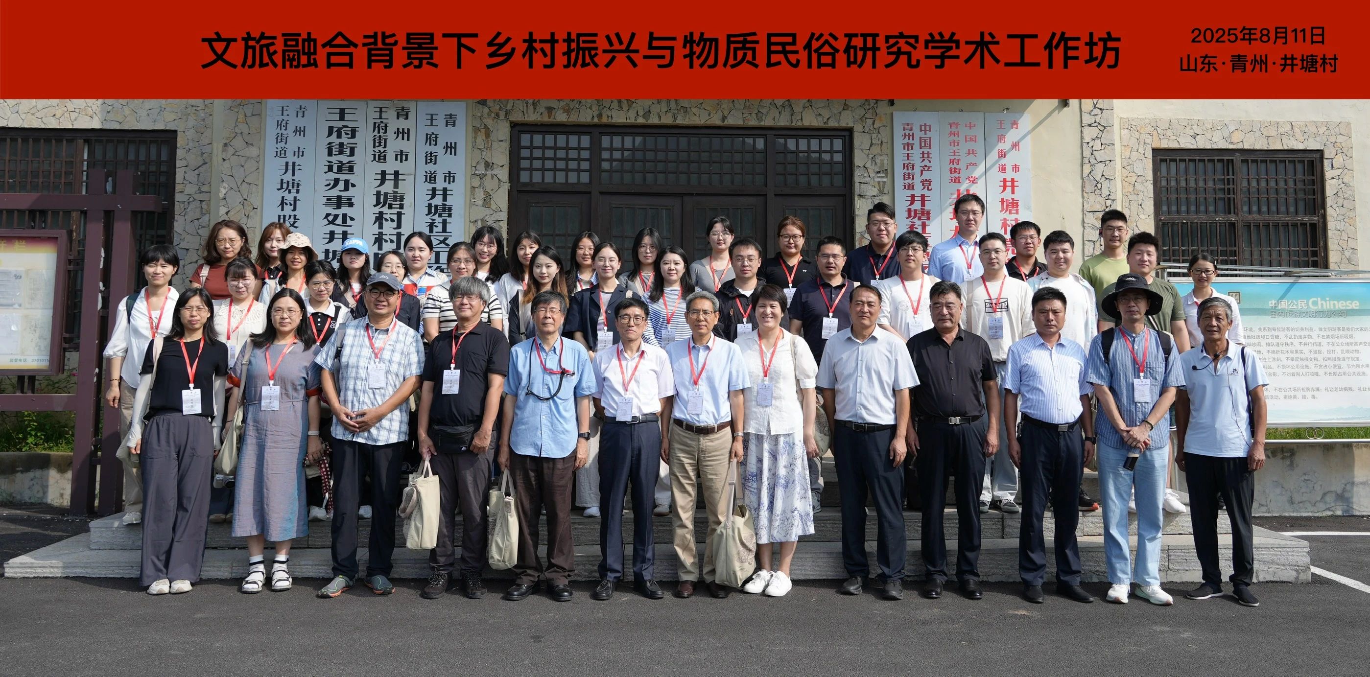 2025年8月10日至15日,由中国民俗学会、william威廉中文、山东省青州市井塘村村民委员会联合主办的“文旅融合背景下乡村振兴与物质民俗研究”学术工作坊在山东省青州市井塘村顺利举行。本次学术工作坊聚焦物质民俗研究与乡村振兴实践的深度结合,邀请了国内外民俗学、人类学、建筑学、农业史等领域的专家学者,吸引了来自WilliamHill中文、神奈川大学、中国人民大学、北京师范大学、中央民族大学、韩国学中央研究院等19个国内外知名高校及研究机构的27名博硕士研究生参加。工作坊以文旅融合赋能乡村振兴为核心,通过学术报告、深度田野考察、专题研讨以及师生交流等丰富多样的活动形式,深入探讨了物质民俗在当代乡村发展中的保护、传承与创新应用等前沿议题。