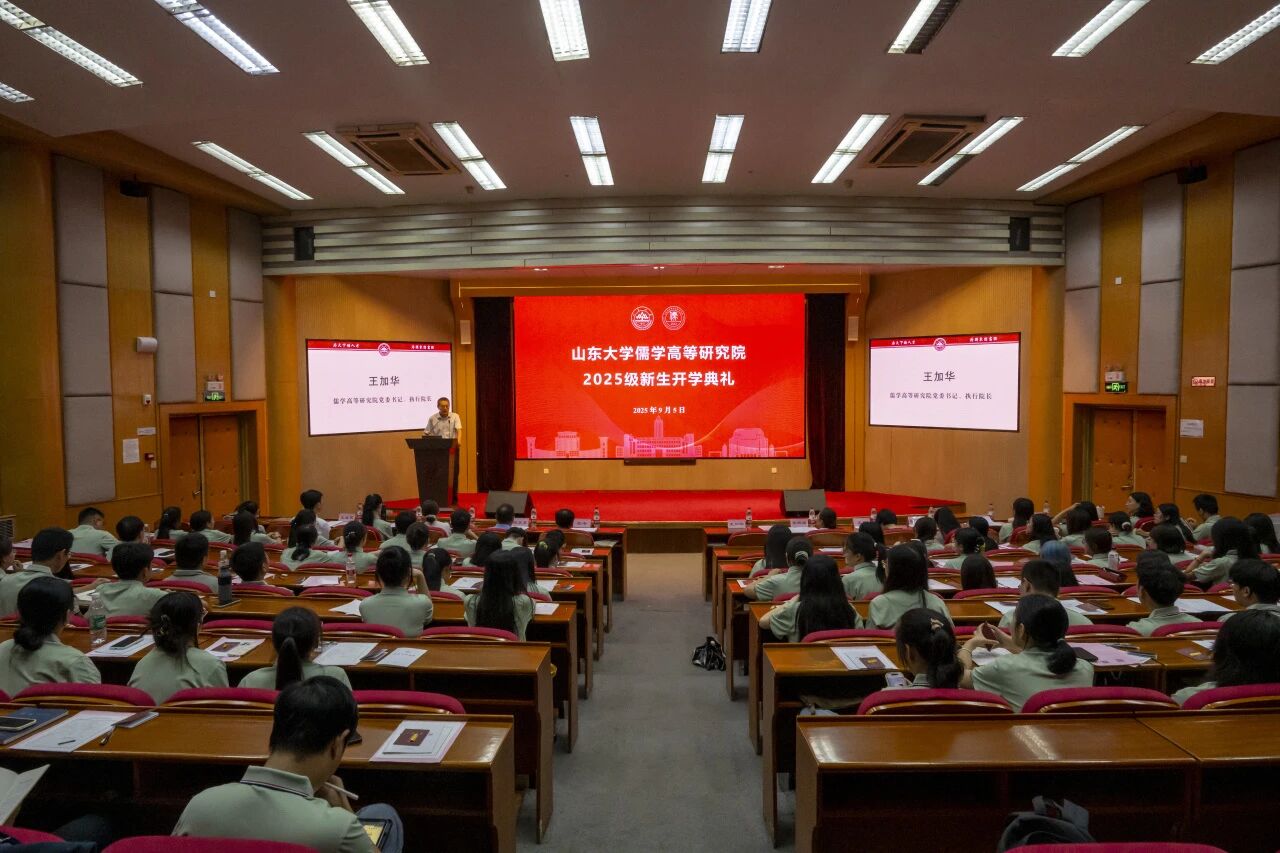 最后,学生代表依次发言。2024级硕士研究生党祎超代表儒学院全体在校生欢迎新同学的到来。她向同学们分享了自己的学习感悟,希望同学们可以锚定学术目标,校准心态,把握逐梦年华。2025级研究生新生钟悦代表全体新生向儒学院领导老师以及师兄师姐们表达了诚挚的感谢。钟悦同学分享了自己初入山大的所思所感,认为研究生阶段不仅是知识的深化,更是人格的锤炼、视野的开拓。她号召同学们以“学无止境”的态度潜心钻研,以“气有浩然”的品格立德修身。尼山学堂新生代表王盛乐结合自己的求学经历,号召同学们“读古籍,做研究,承担起传承中华优秀传统文化的任务”,让传统学术在当今社会再焕新生。