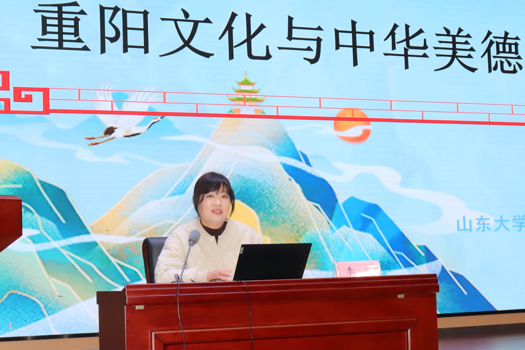 在宣讲环节,李琳以《重阳文化与中华美德》为题展开分享。她从唐代诗人王维的《九月九日忆山东兄弟》切入,并列举多首重阳主题古诗,印证重阳文化的源远流长。她借助甲骨文与古籍文献,清晰梳理中华孝文化与重阳节的起源,系统讲解古今重阳传统风俗,并通过中西对比,深入剖析重阳文化背后“敬老孝亲”的核心美德内涵。李琳强调,重阳节作为中华优秀传统文化的重要符号,是传播民族文化、培育民族精神、满足精神文化需求的关键平台。她提出,传承传统节日的过程也是传统文化“新生”的过程,需守护好节俗功能、美德内涵与文化象征意义,并寄语学生要发扬新生代的青春活力,推动中华优秀传统文化创造性转化、创新性发展。随后,李平生进行点评总结。