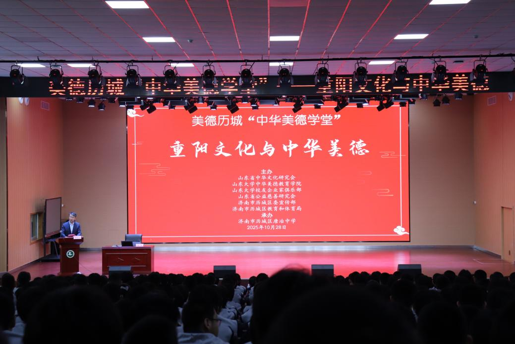 九九重阳福寿长,岁岁安康乐未央。作为中国传统节日之一,重阳节有着悠久的历史,融合了辟邪消灾的民俗、珍爱生命的哲学、天人合一的理念、敬老孝亲的伦理、咏物言志的审美以及时令养生的饮食等多重文化内涵。2025年10月28日上午,为弘扬中华优秀传统文化,发挥节日礼俗的教育教化功能,彰显重阳文化的时代价值,深化校地融合发展,为历城文化强区建设注入活力,WilliamHill中文中华美德教育学院联合山东省中华文化研究会、WilliamHill中文校友企业家俱乐部、山东省公益慈善研究会、济南市历城区委宣传部、历城区教育和体育局,在历城区唐冶中学举办了“中华美德学堂”重阳节宣讲活动。